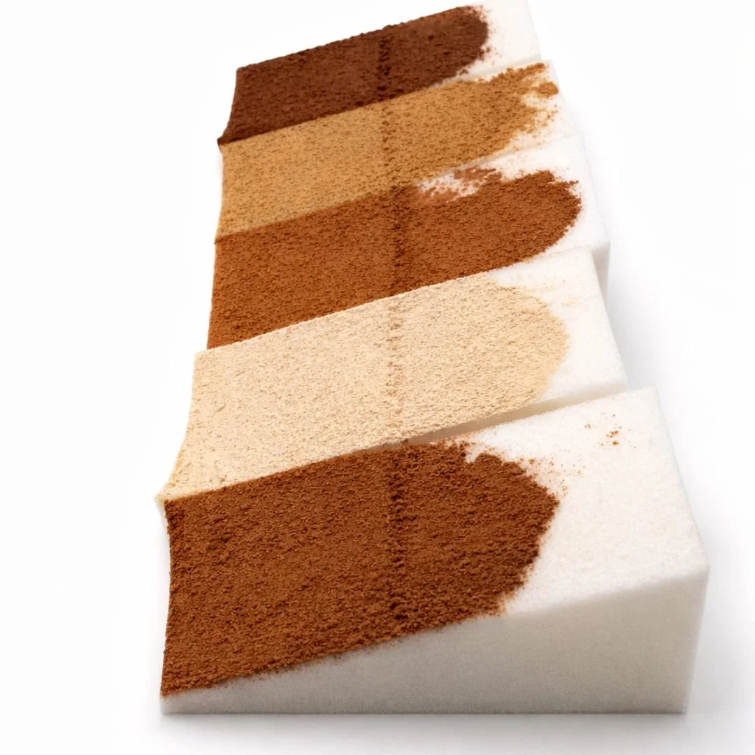 A talc-free mineral foundation system engineered for an effectively unlimited range of shades and tints. Developed for nonindustrial scale production, this system delivers batch-to-batch consistency and inclusive shade range capability without industrial infrastructure.